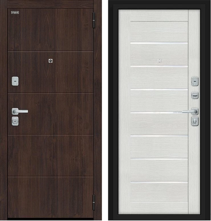 Надежная входная Дверь Браво Прайм/BChrome Almon/Bianco Melinga премиум класса по цене 42 471 руб. Большая толщина стали защитит от проникновения в ваш дом, квартиру или коттедж. Используется очень качественная фурнитура: замки, цилиндры, ручки, защелки. Покрытие и отделка двери изготовлено под внимательным контролем производителя. Дверь имеет долгий срок службы и гарантию.
