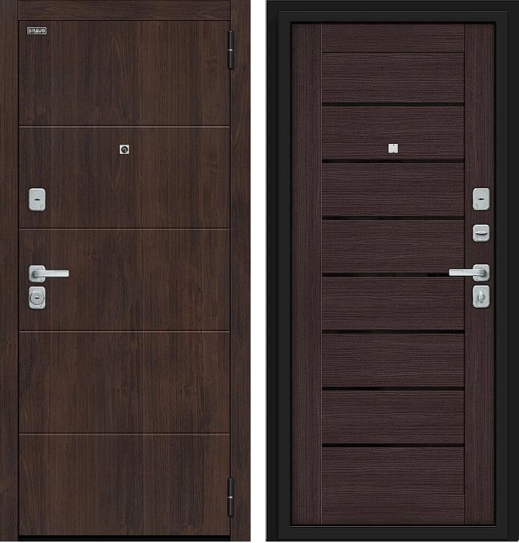 Надежная входная Дверь Браво Прайм/BChrome Almon/Wenge Melinga премиум класса по цене 42 471 руб. Большая толщина стали защитит от проникновения в ваш дом, квартиру или коттедж. Используется очень качественная фурнитура: замки, цилиндры, ручки, защелки. Покрытие и отделка двери изготовлено под внимательным контролем производителя. Дверь имеет долгий срок службы и гарантию.
